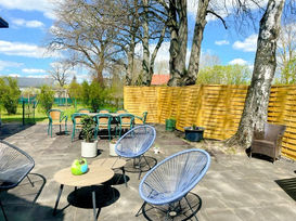 Der Landhof befindet sich auf einem ca. 5.000 qm großen und voll eingezäunten Grundstück. Es gibt private Parkplätze, 3 schöne Terrassen zum Entspannen, einen kleinen Spielplatz für Kinder, eine Infrarotsauna (diese ist auch super für das Immunsystem für Kinder) und ein Badefass mit integriertem Holzofen. Für das leibliche Wohl stehen auch Kohlegrills zur Verfügung. (Grillkohle ist nicht vorhanden uns muss selbst besorgt werden)
